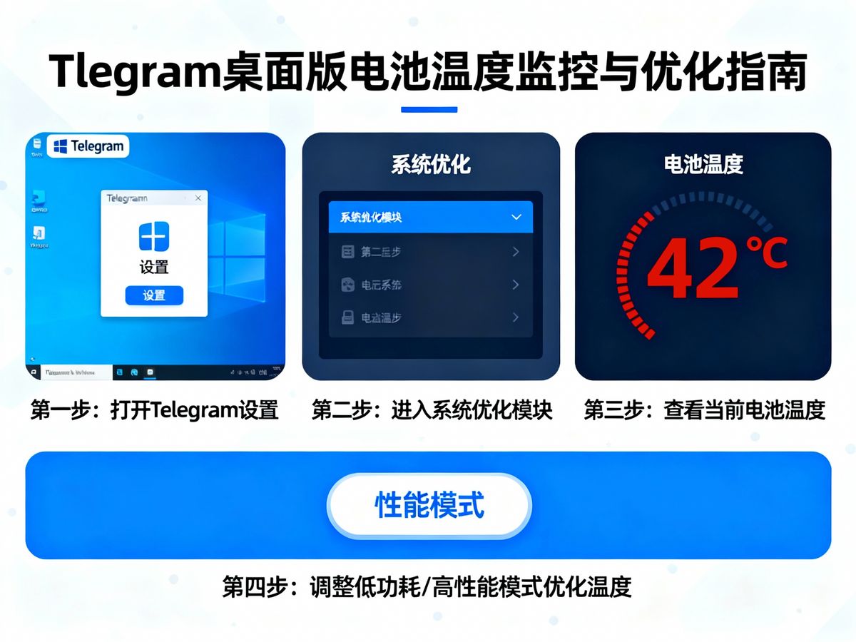 动态2026年02月14日Telegram优化电池温度监控(怎么监控电池温度并优化?)摘要:随着移动应用的快速发展,电池温度监控已成为设备健康管理的关键问题。本文以Telegram优化电池温度监控为核心,探讨其在桌面版Windows聊天软件中的应用与改进。文章将介绍电池温度监...1047 阅读阅读全文 →